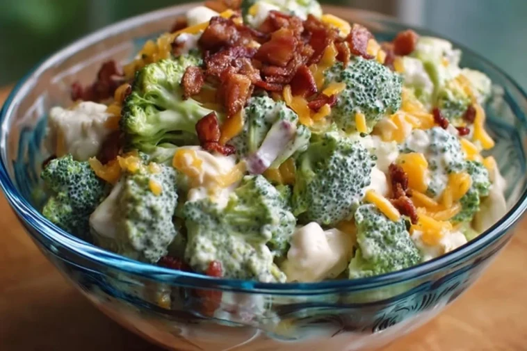 Cremiger, süß-säuerlicher Brokkolisalat mit knusprigem Speck, Käse, Sonnenblumenkernen und einem amischen Mayonnaise-Joghurt-Dressing – perfekt für Grillabende, Buffets und als unkomplizierte Beilage, die sich gut vorbereiten lässt.