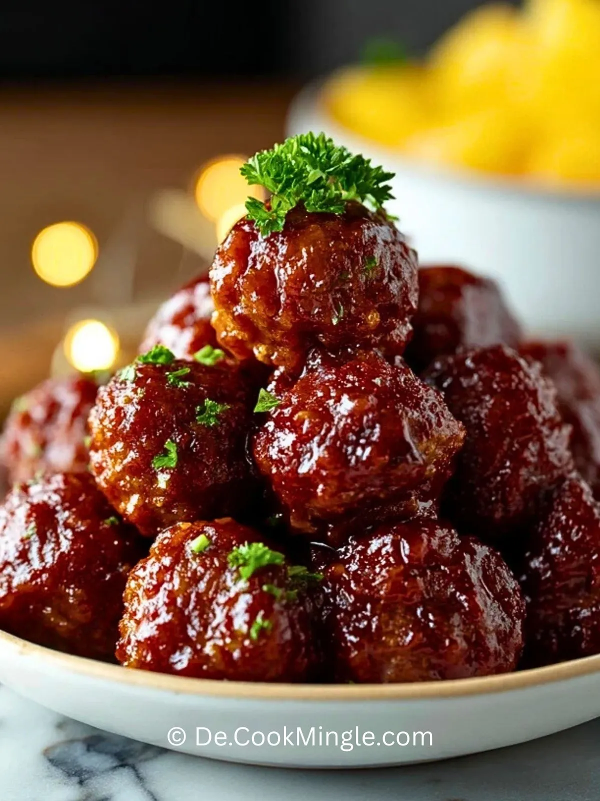 Bestreue die fertigen Ananas BBQ Fleischbällchen mit frisch gehackter Petersilie und serviere sie heiß. Besonders gut passen Reis, Kartoffelpüree, Ofenkartoffeln oder knuspriges Brot dazu.