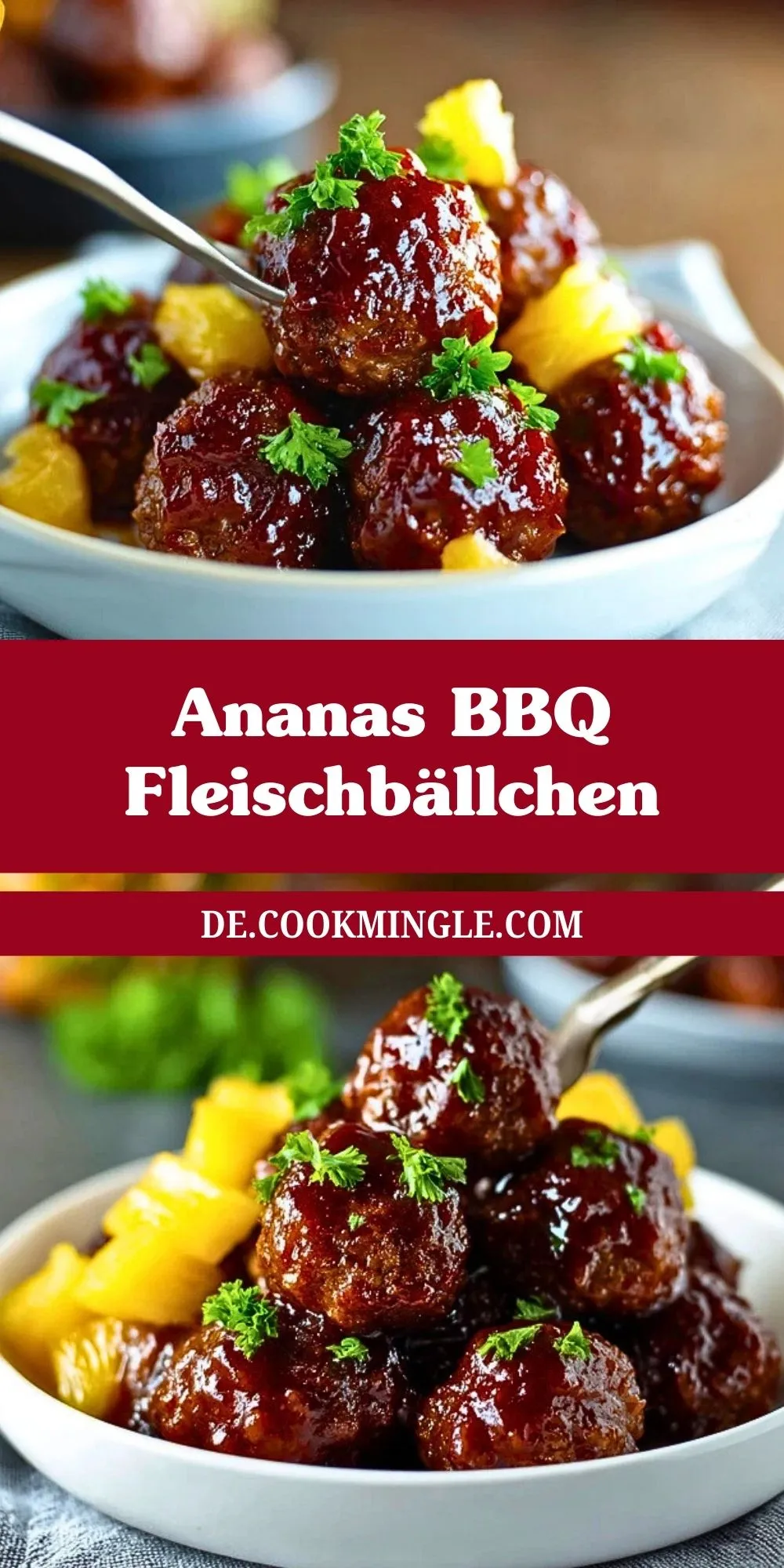 Keywords: Ananas BBQ Fleischbällchen, Fleischbällchen mit BBQ Sauce, Fleischbällchen mit Ananas, Party Rezept, schnelles Abendessen