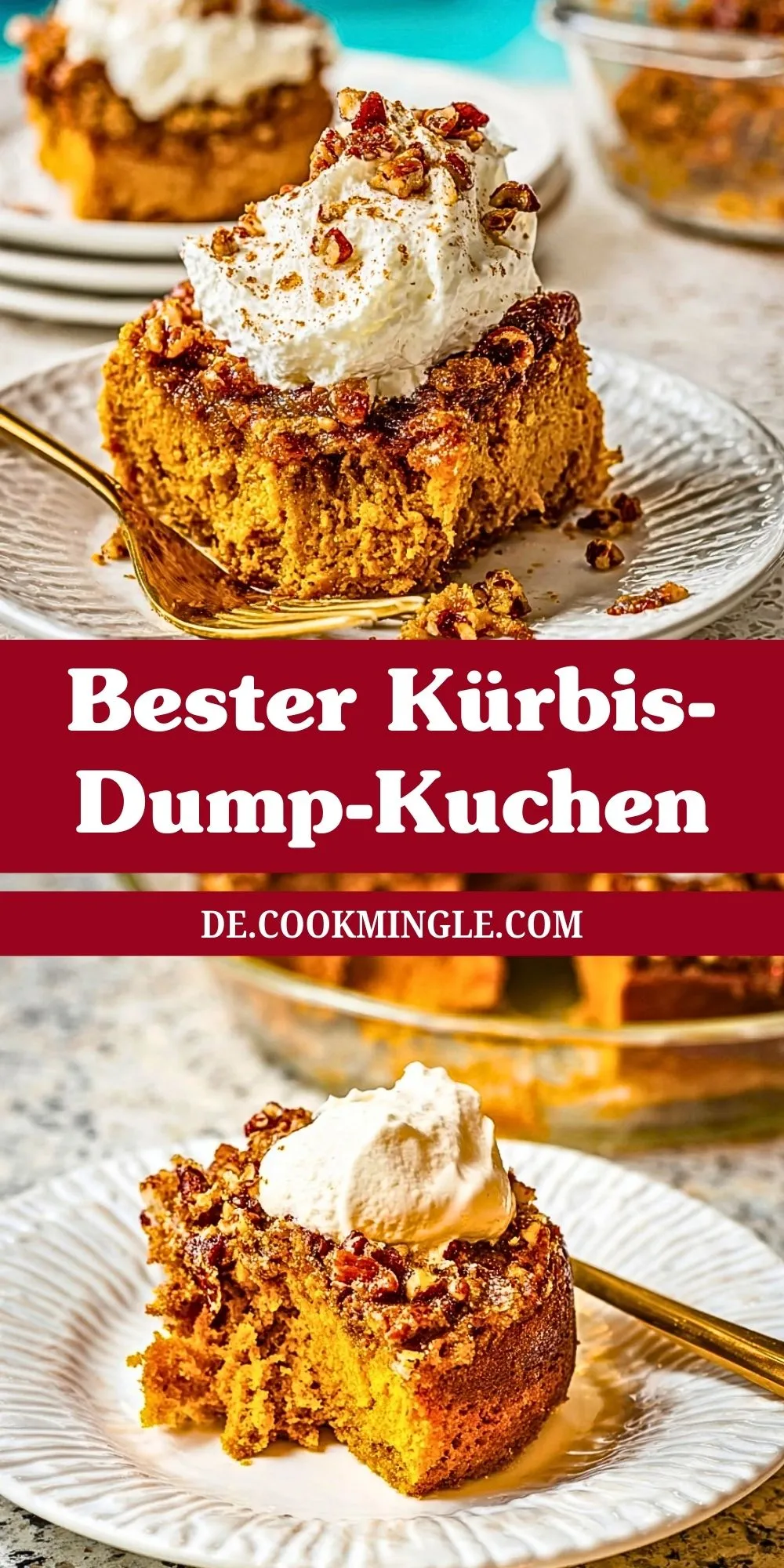 Ein Dump-Kuchen ist deshalb so unkompliziert, weil die Zutaten einfach „gedumpt“, also geschichtet, werden – kein mühsames Rühren oder Teigkneten. Durch die verschiedenen Schichten entsteht ein köstlicher Kontrast zwischen saftigem Kürbisboden und knusprigem Topping.