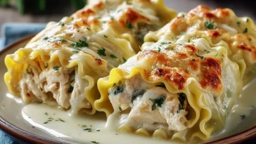 Einfache Hähnchen Alfredo Lasagne-Röllchen
