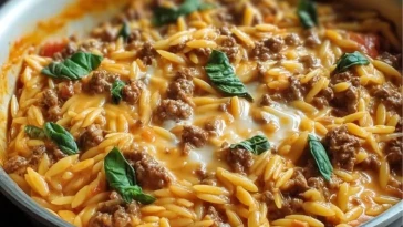 Hackfleisch-Orzo mit Tomaten-Sahnesauce