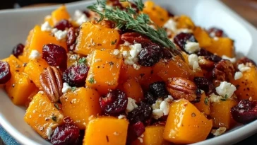 Honiggerösteter Butternut-Kürbis mit Cranberries, Pekannüssen und Feta