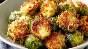 Krosse Parmesan-Kruste Röstender Rosenkohl