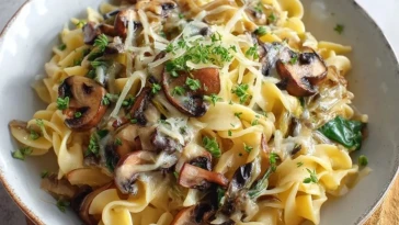 Karamellisierte Lauch- und Pilz-Gruyère-Pasta