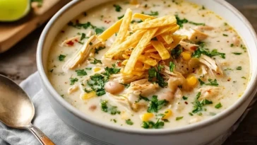 Cremige Weiße Hähnchen-Enchilada-Suppe