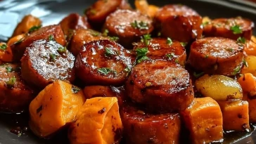 Honig-Knoblauch-Wurst mit Süßkartoffeln
