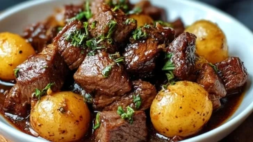Langsam Gekochte Knoblauchbutter Rinderbissen mit Kartoffeln