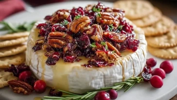 Einfacher Gebackener Brie mit Preiselbeeren und Pekannüssen