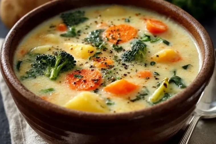 Diese cremige Gemüsesuppe ist eine wohlig-warme Schüssel voller zarter Kartoffeln, knackigem Gemüse und einer milden Sahnebrühe – perfekt für kühle Tage, schnelle Familienabende oder als leichte Hauptmahlzeit.