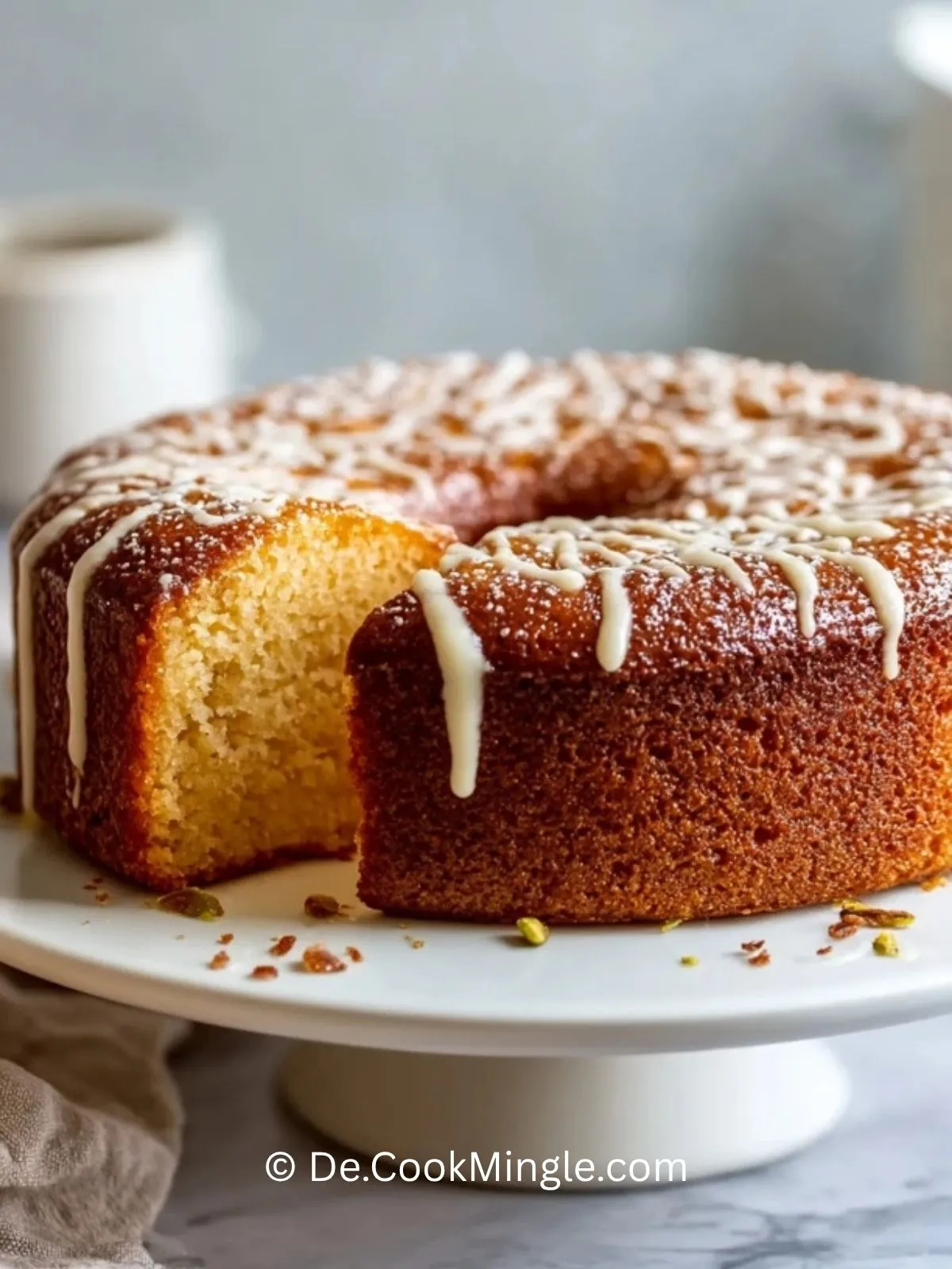 Lass den Kuchen zunächst 10 bis 15 Minuten in der Form ruhen. Löse ihn dann vorsichtig heraus und lasse ihn vollständig auf einem Gitter auskühlen. Vor dem Servieren mit Puderzucker bestäuben.