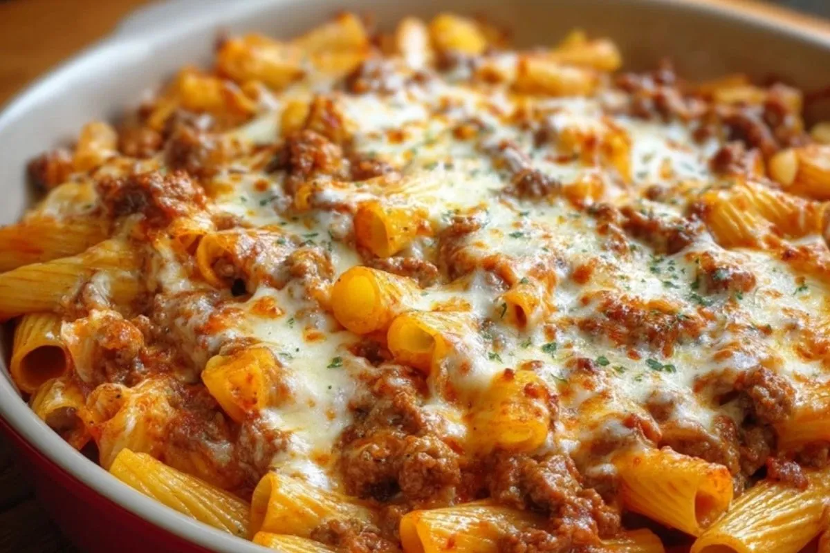 Rindfleisch-Rigatoni-Auflauf mit Käse
