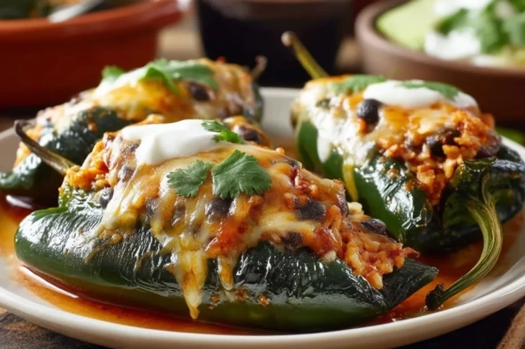 Saftige, im Ofen gebackene Poblano-Chilis, gefüllt mit einer würzigen Mischung aus Reis, Bohnen und geschmolzenem Käse. Dieses mexikanische Wohlfühlgericht ist unkompliziert, vegetarisch und macht garantiert satt. Perfekt für ein herzhaftes Familienessen oder als Highlight beim mexikanischen Abend!