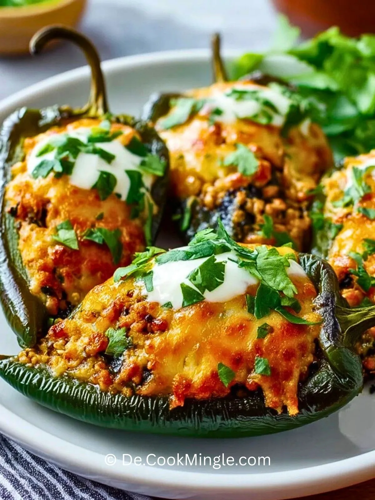 • Poblano-Chilis: Sie sind das Herzstück des Gerichts und bringen ein mildes, leicht rauchiges Aroma.