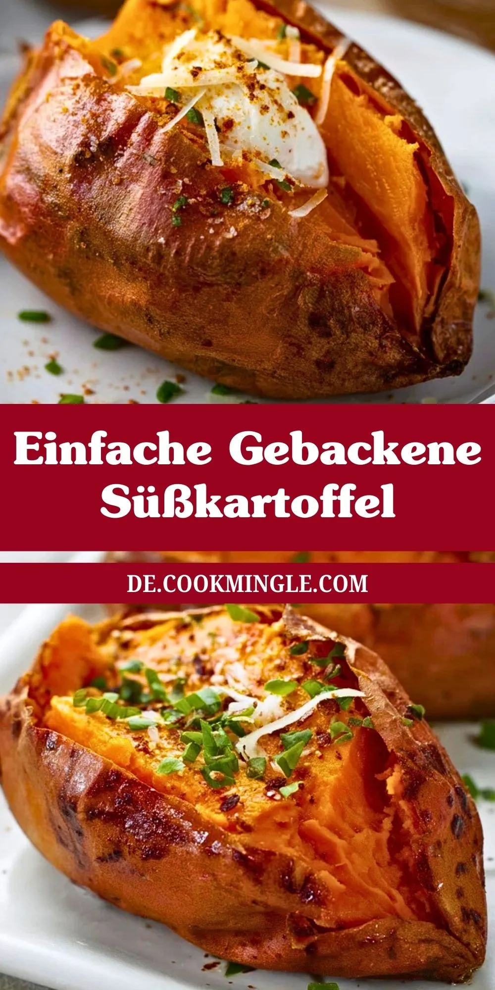 Gebackene Süßkartoffeln schmecken frisch aus dem Ofen am besten. Du kannst sie pur genießen oder mit weiteren Toppings wie Feta, Quark oder gebratenem Gemüse servieren. Reste lassen sich im Kühlschrank luftdicht verpackt bis zu 2 Tage aufbewahren und bei 180 °C im Ofen wieder erwärmen.