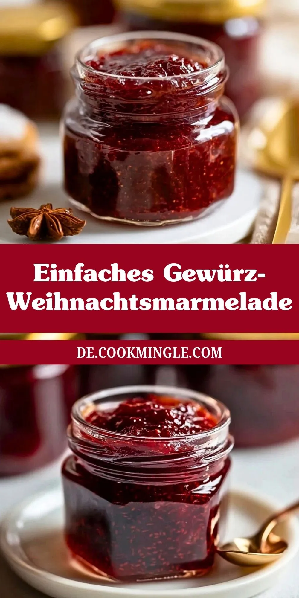 Einfache Gewürz-Weihnachtsmarmelade vereint winterliche Gewürze und fruchtige Beeren zu einer festlichen Köstlichkeit. Ideal als Geschenk, zum Frühstück oder als besonderes Extra in der Weihnachtsbäckerei. Sie schmeckt nach Advent und macht jeden Morgen zum Fest.