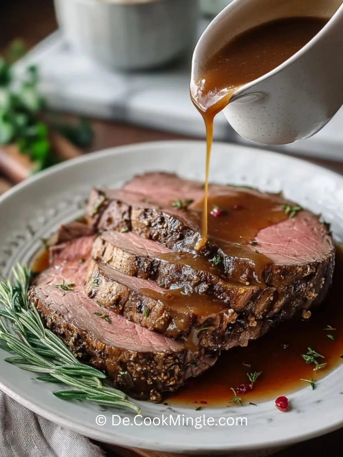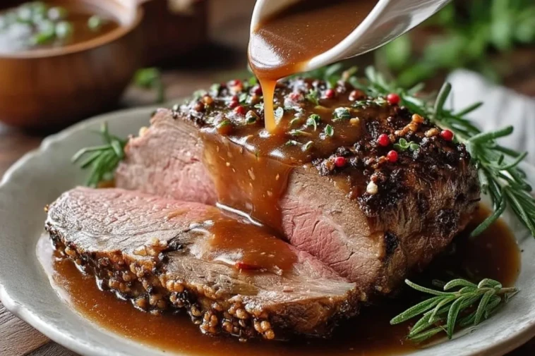 Ein saftiges, rosa gebratenes Prime Rib mit kräftiger Jus – perfekt für Feiertage oder besondere Sonntagsessen und dabei überraschend unkompliziert in der Zubereitung.