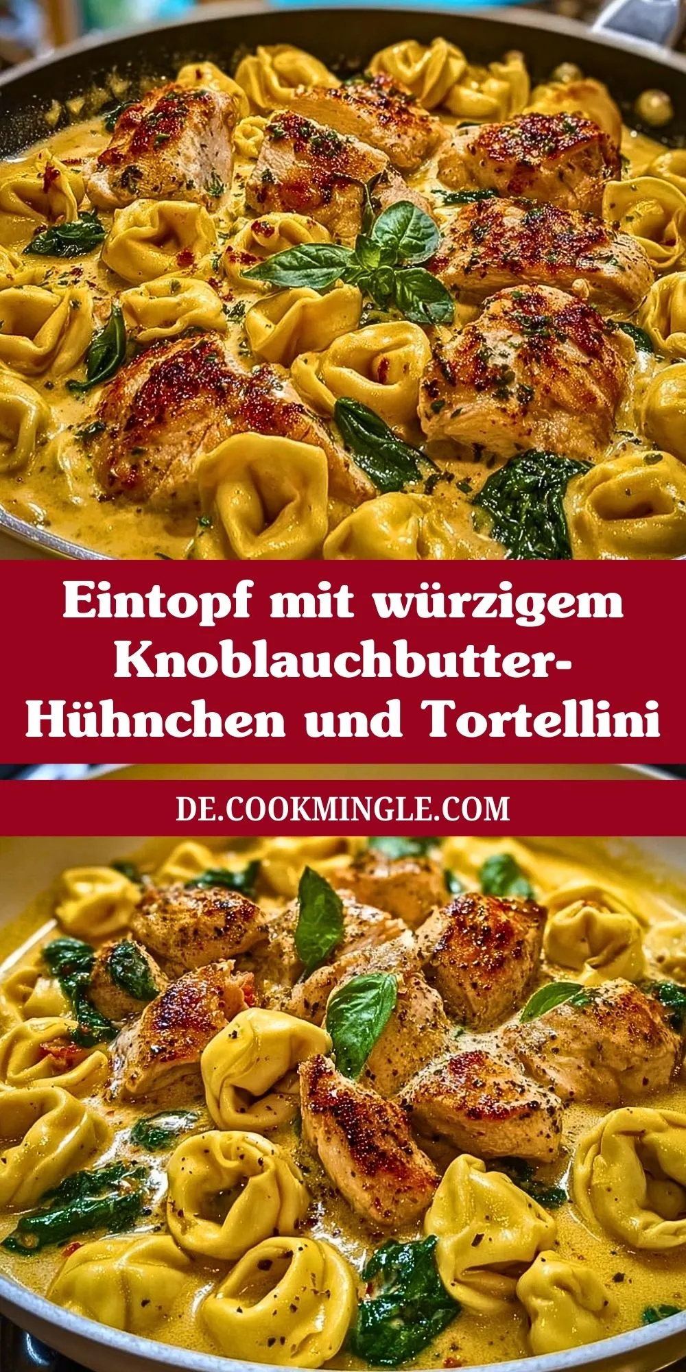 Cremiger Eintopf mit zartem Knoblauchbutter-Hühnchen, frischen Tortellini und Spinat – ein Wohlfühlgericht für die ganze Familie. Schnell zubereitet, unwiderstehlich aromatisch und perfekt für gemütliche Abende!