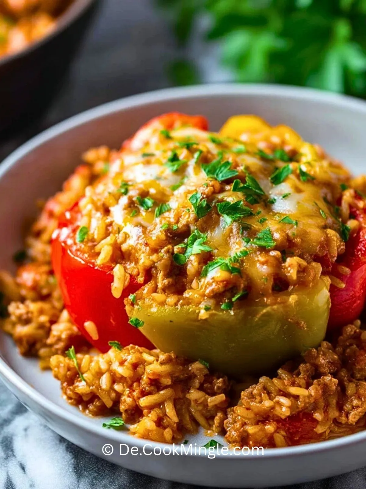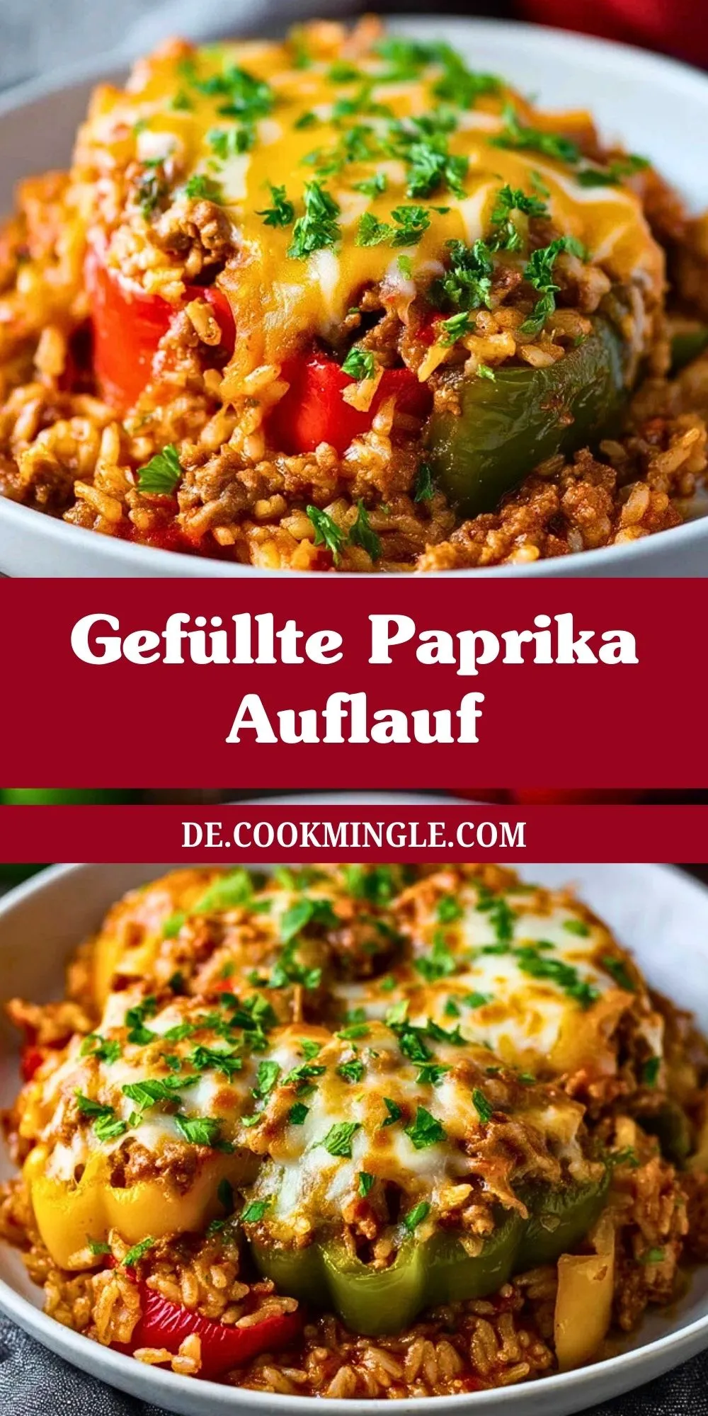 Herzhafte Paprika, gefüllt mit einer würzigen Mischung aus Hackfleisch, Reis und Tomaten, überbacken mit geschmolzenem Käse. Ein Klassiker der deutschen Hausmannskost, perfekt für die ganze Familie!