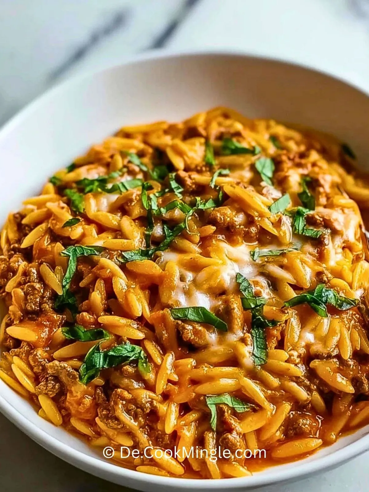 Keywords: Orzo, Hackfleisch, Tomatensauce, Familienessen