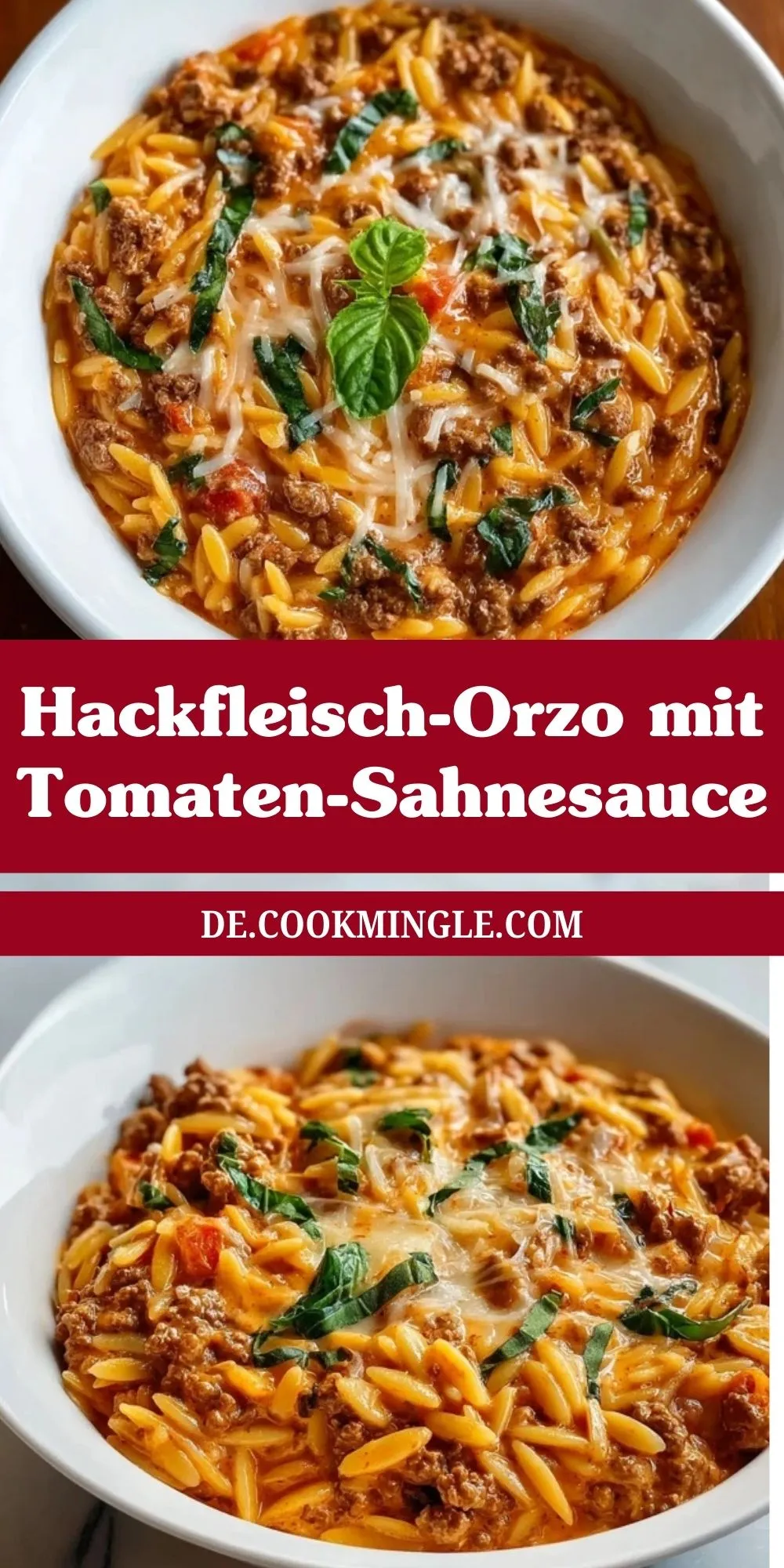 Dieses Gericht bringt italienisches Flair direkt in deine Küche! Hackfleisch-Orzo mit Tomaten-Sahnesauce ist ein echtes Wohlfühlessen: cremig, würzig und mit einer angenehmen Frische durch Basilikum. Die Kombination aus zartem Orzo (Kritharaki-Nudeln), saftigem Rinderhack und der feinen Tomaten-Sahnesauce sorgt für ein harmonisches Geschmackserlebnis, das garantiert Groß und Klein begeistert.