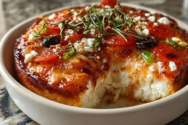 Die Hüttenkäse-Pizza-Schüssel verbindet cremige Frische mit den kräftigen Aromen einer guten Pizza. Der Hüttenkäse sorgt für eine milde, leicht lockere Grundlage, die die würzige Sauce und den geschmolzenen Käse besonders gut aufnimmt. Zusammen mit aromatischen Toppings wie Salami, Kräutern, Frühlingszwiebeln oder etwas Feta entsteht ein Ofengericht, das vertraut schmeckt und trotzdem eine originelle Abwechslung bietet.