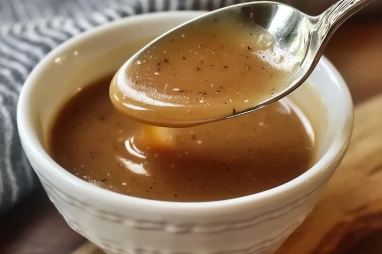 Die Soße am besten heiß servieren – zum Beispiel über Kartoffelpüree, gebratenem Hähnchen oder Pommes. Wer möchte, kann sie durch ein feines Sieb passieren, um sie besonders glatt zu machen.