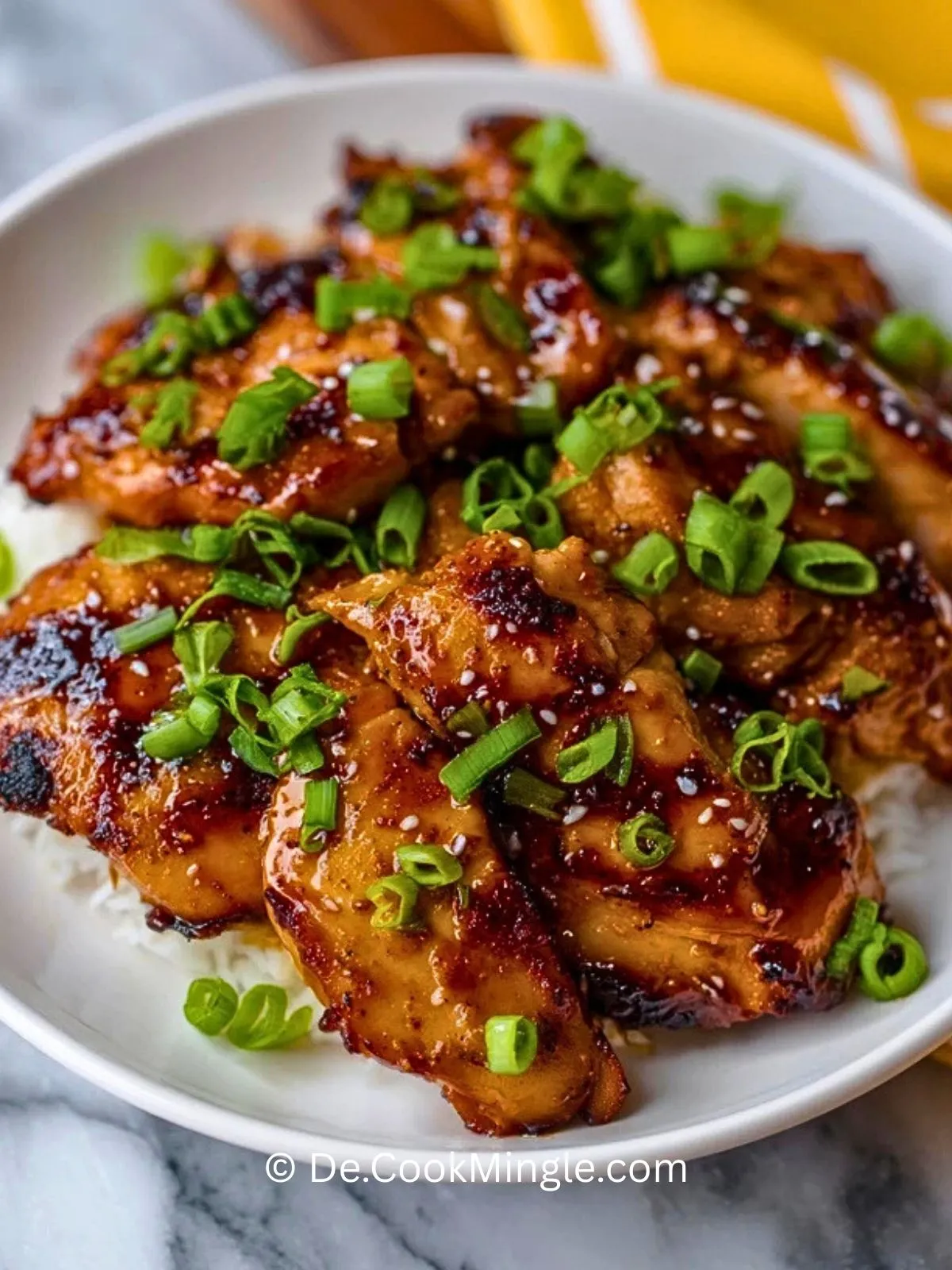 Besonders praktisch ist, dass dieses Rezept mit wenigen Grundzutaten auskommt und trotzdem intensiv aromatisch schmeckt. Durch die Marinade wird das Fleisch zart und würzig, während die Sauce beim Braten oder Grillen karamellisiert und für die typischen dunklen, appetitlichen Stellen sorgt. Ein wenig Frühlingszwiebel darüber – und schon wirkt das Gericht frisch, bunt und rund.