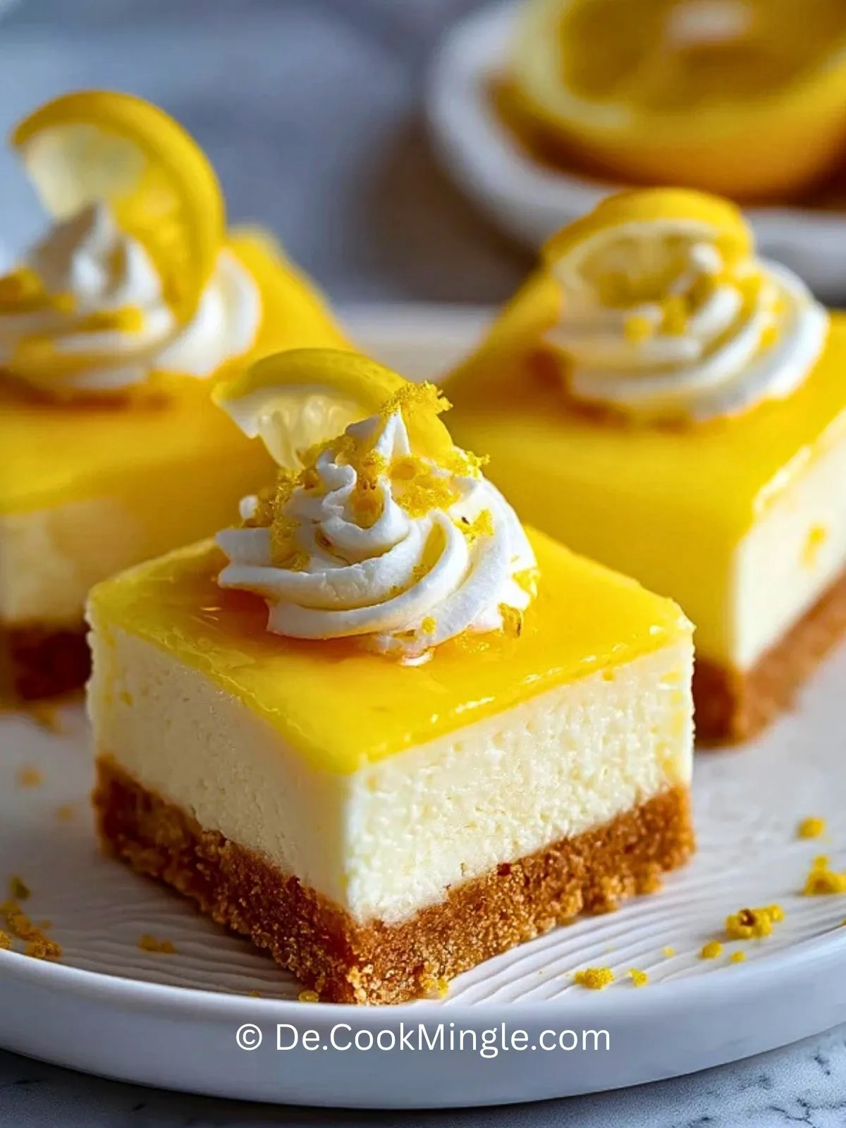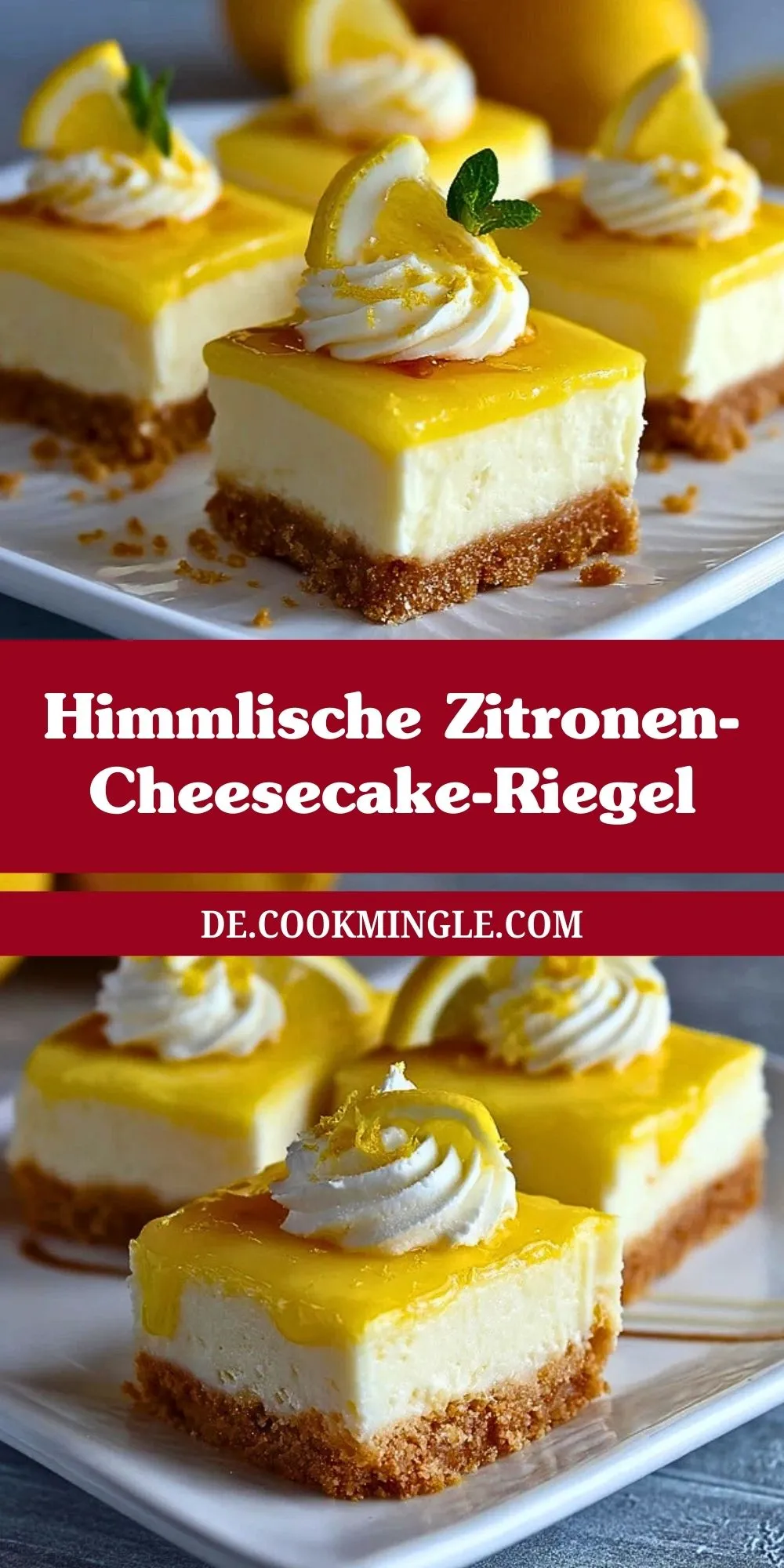 Cremige, frische und wunderbar zitronige Cheesecake-Riegel mit knusprigem Keksboden – perfekt zum Vorbereiten und ideal für Frühling, Sommer oder jede Kaffeetafel, auf der etwas Leichtes und Elegantes gefragt ist.