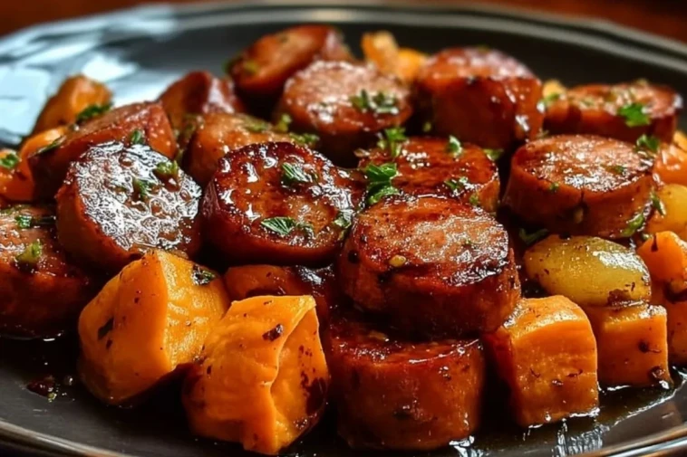 Saftige Wurstscheiben treffen auf würzige, karamellisierte Süßkartoffeln: Dieses Gericht bringt herzhaft-süße Aromen in perfekter Harmonie zusammen. Honig und Knoblauch sorgen für ein unwiderstehliches Aroma, während die gebackenen Süßkartoffelstücke für eine angenehme Süße und sämige Konsistenz sorgen. Ob als deftiges Abendessen unter der Woche oder als Highlight auf dem nächsten Familienbuffet – dieses Rezept ist unkompliziert, aromatisch und gelingt garantiert.