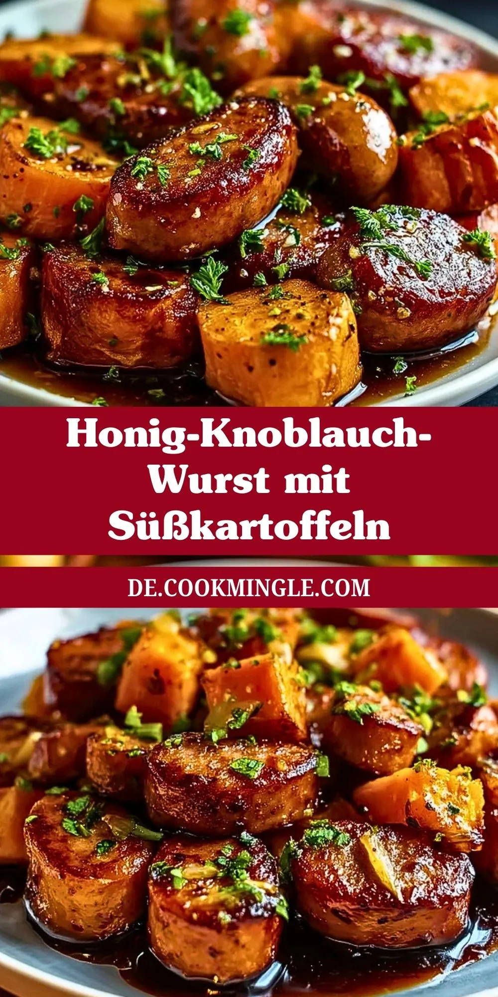 So bereitest du Honig-Knoblauch-Wurst mit Süßkartoffeln zu