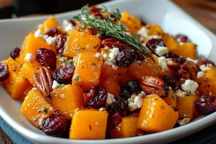 Honiggerösteter Butternut-Kürbis mit Cranberries, Pekannüssen und Feta