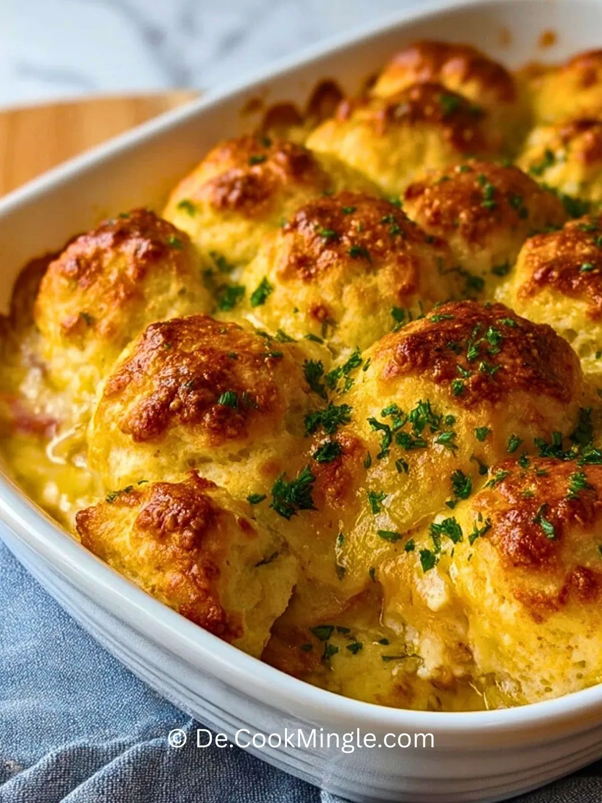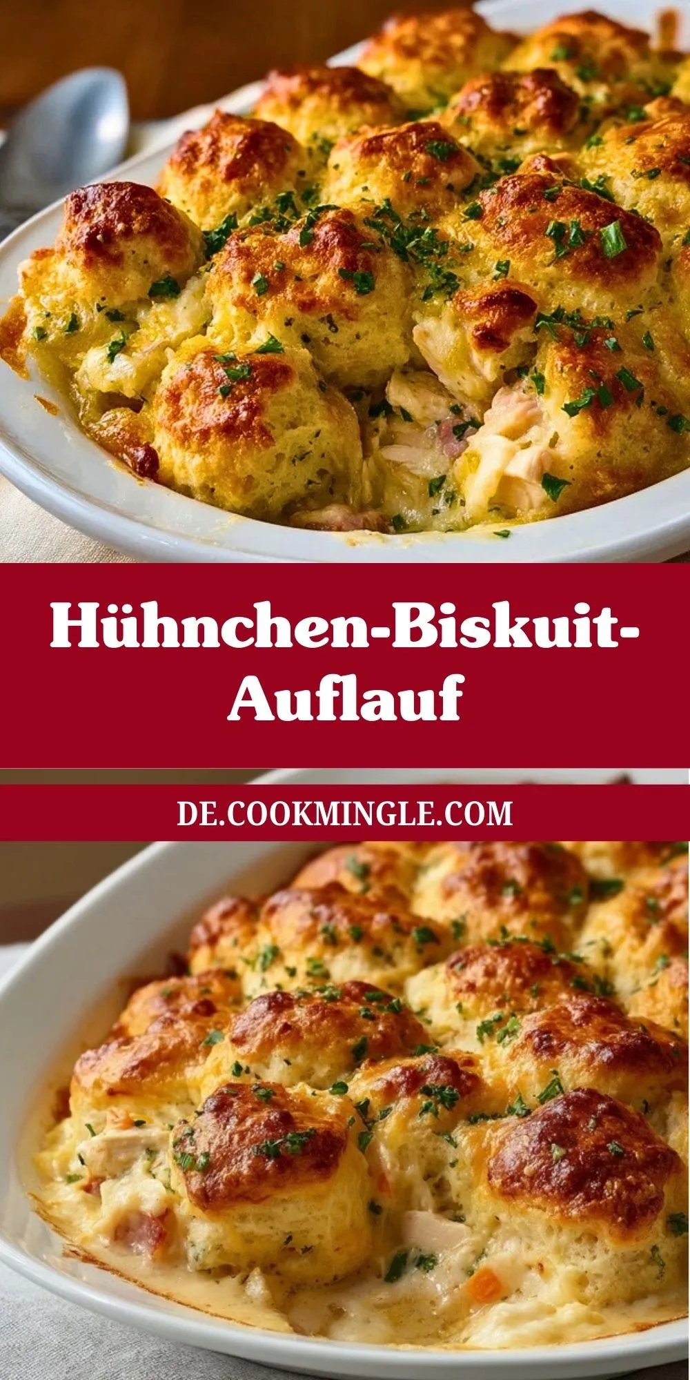 Saftiges Hähnchenfleisch in cremiger Sauce, überbacken mit fluffigen, goldbraunen Biskuitklößchen und geschmolzenem Käse – der Hühnchen-Biskuit-Auflauf ist der ultimative Wohlfühl-Klassiker für die ganze Familie. Perfekt zum Vorbereiten, Aufwärmen und Genießen an kühlen Tagen.