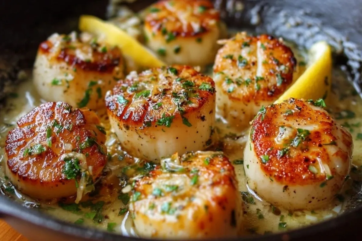 Knoblauch-Zitronen-Butter gebratene Jakobsmuscheln