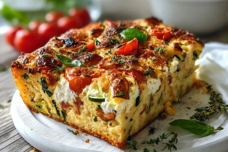 Etwas abkühlen lassen und in Stücke schneiden. Nach Wunsch mit frischen Kräutern garnieren und servieren.