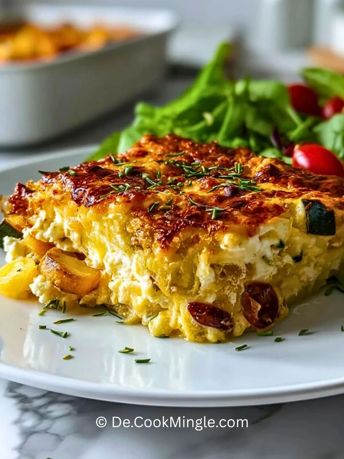 Ein frischer Blattsalat oder ein einfaches Joghurt-Dip ergänzen den Auflauf perfekt.