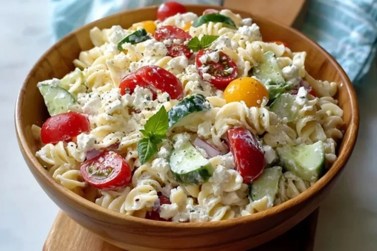 So bereitest du Hüttenkäse Nudelsalat zu