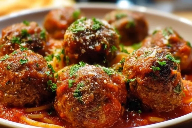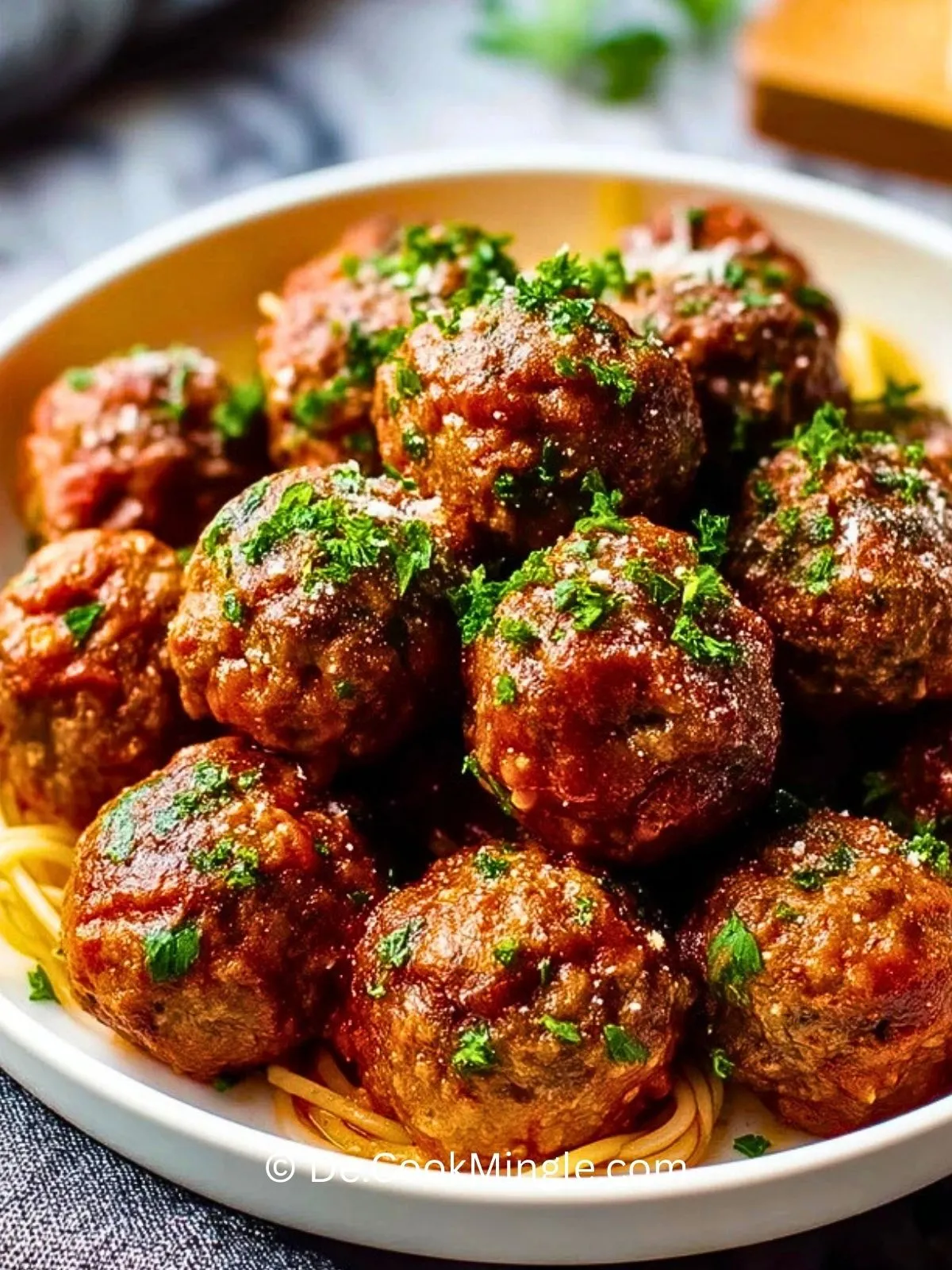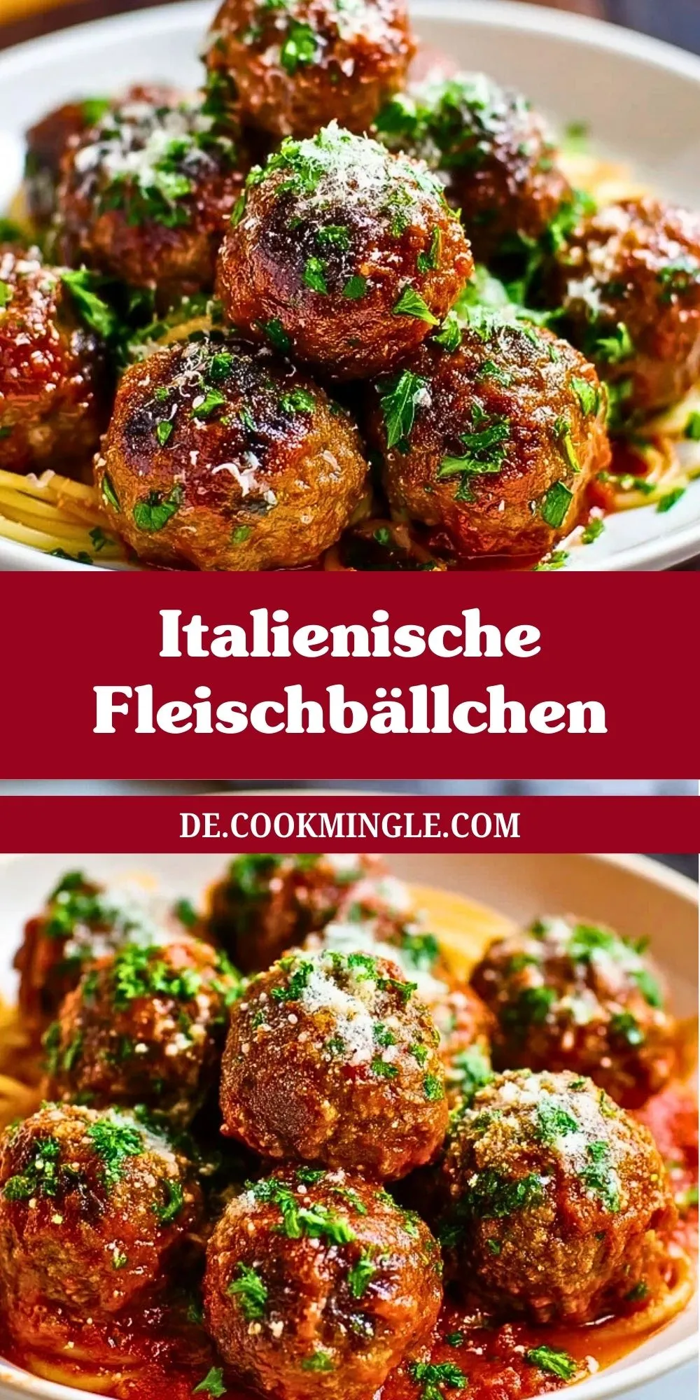 Saftige italienische Fleischbällchen, geschmort in einer würzigen Tomatensauce und serviert auf Spaghetti – dieses Gericht ist ein absoluter Klassiker der italienisch-amerikanischen Küche. Die aromatische Kombination aus Rindfleisch, Parmesan, frischen Kräutern und Knoblauch sorgt für ein echtes Wohlfühl-Essen, das der ganzen Familie schmeckt. Egal ob für das gemütliche Abendessen oder als besonderes Highlight bei Gästen, diese Fleischbällchen werden alle begeistern.