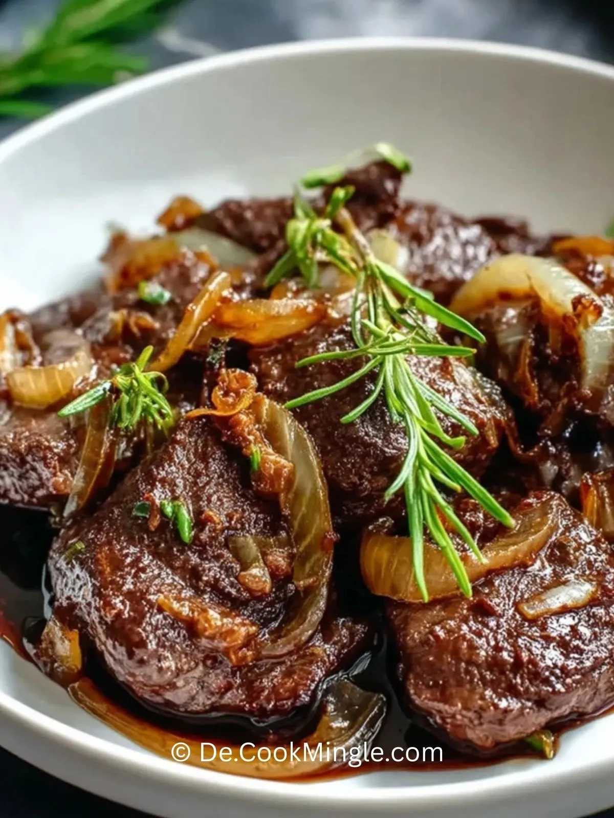 Die Karamellisierte Zwiebel-Rinderleber sofort heiß servieren – gern mit Kartoffelpüree, Bratkartoffeln oder frischem Brot.