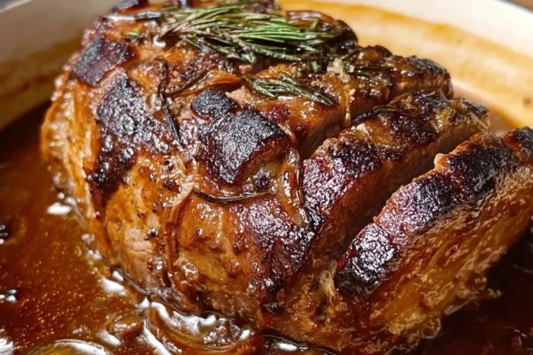 Die Magie dieses Bratens liegt in der Zubereitung der Zwiebeln: Sie werden langsam in Butter und etwas Zucker karamellisiert, bis sie tiefgolden und süß sind. Das verleiht der Sauce ihren einzigartigen Charakter. Zusammen mit frischem Thymian, Rosmarin und einem Schuss Weißwein erhält der Braten eine aromatische Tiefe, die an französische Bistroküche erinnert.