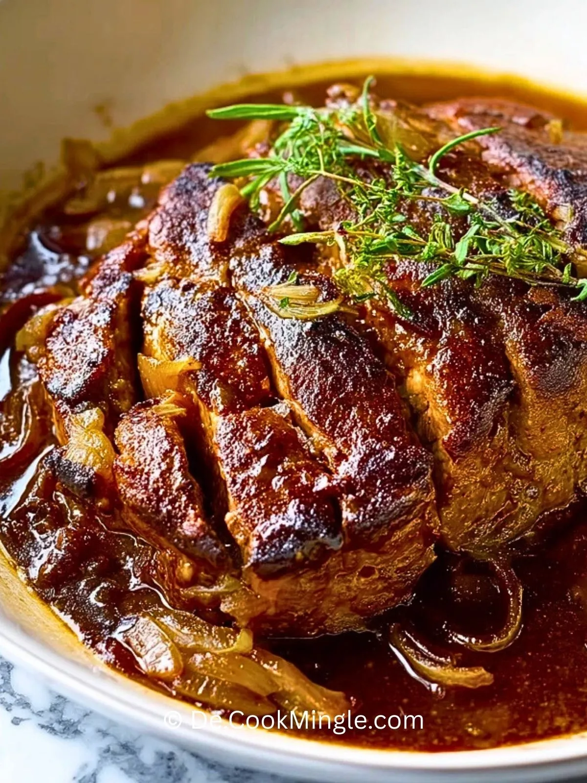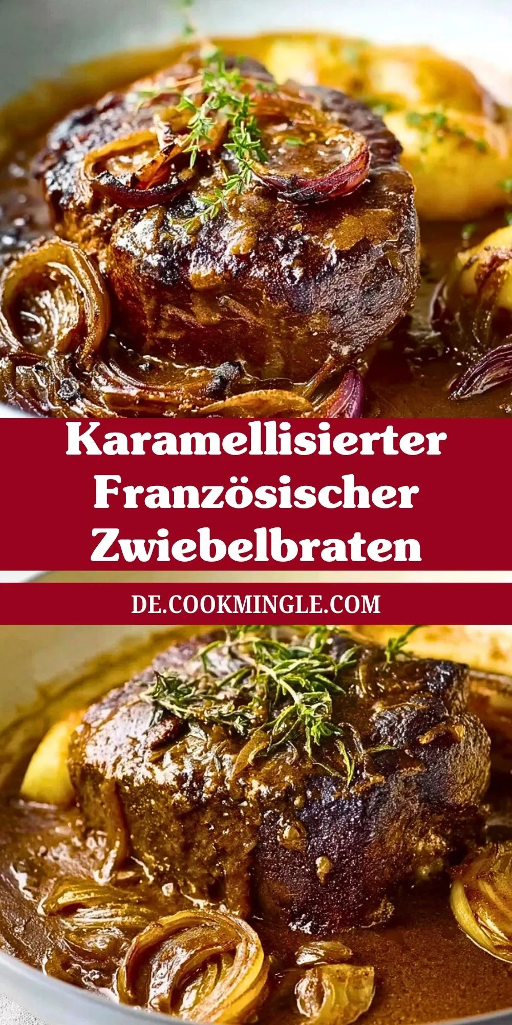 Ein Karamellisierter Französischer Zwiebelbraten bringt das Aroma eines klassischen französischen Zwiebelsuppen-Genusses direkt auf den Sonntagsbraten-Tisch! Zarte Rinderschulter schmort in einer reichhaltigen, karamellisierten Zwiebelsauce, abgerundet mit frischen Kräutern und einem Hauch Weißwein. Das Ergebnis ist ein butterweiches Fleischstück mit intensiven, süß-herzhaften Geschmacksnoten und einer unwiderstehlichen, goldenen Kruste.