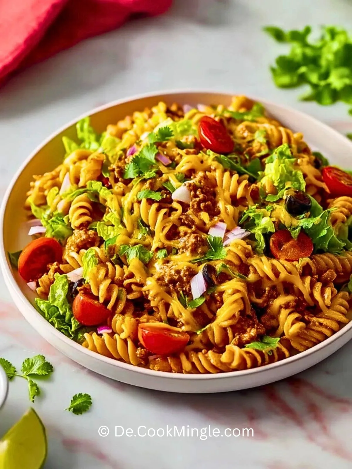 Keywords: Käse-Taco-Nudelsalat, Nudelsalat, Taco-Salat, Partysalat, Tex-Mex-Salat