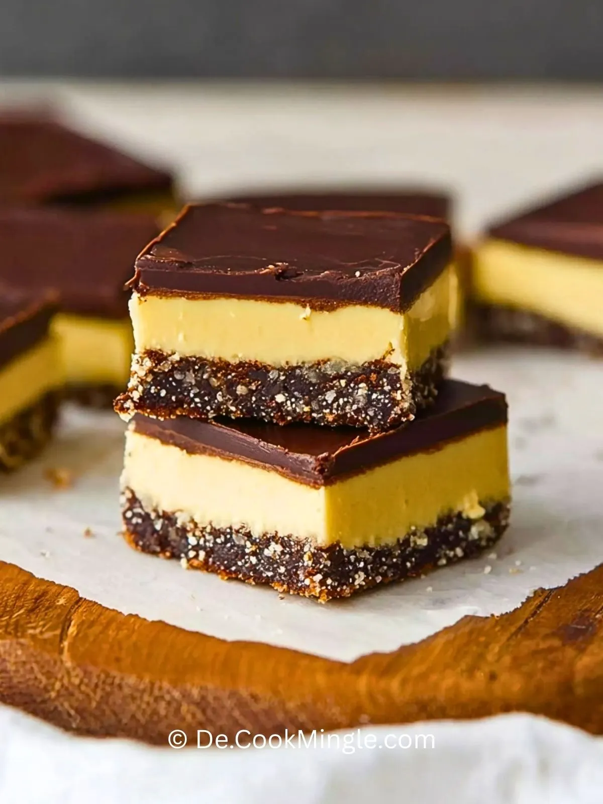 Ein unwiderstehlicher kanadischer Dessertklassiker mit drei Schichten: knusprige Keks-Nuss-Basis, cremige Vanille-Buttercreme und knackige Schokoladenglasur. Ohne Backen – ideal zum Vorbereiten und Teilen!