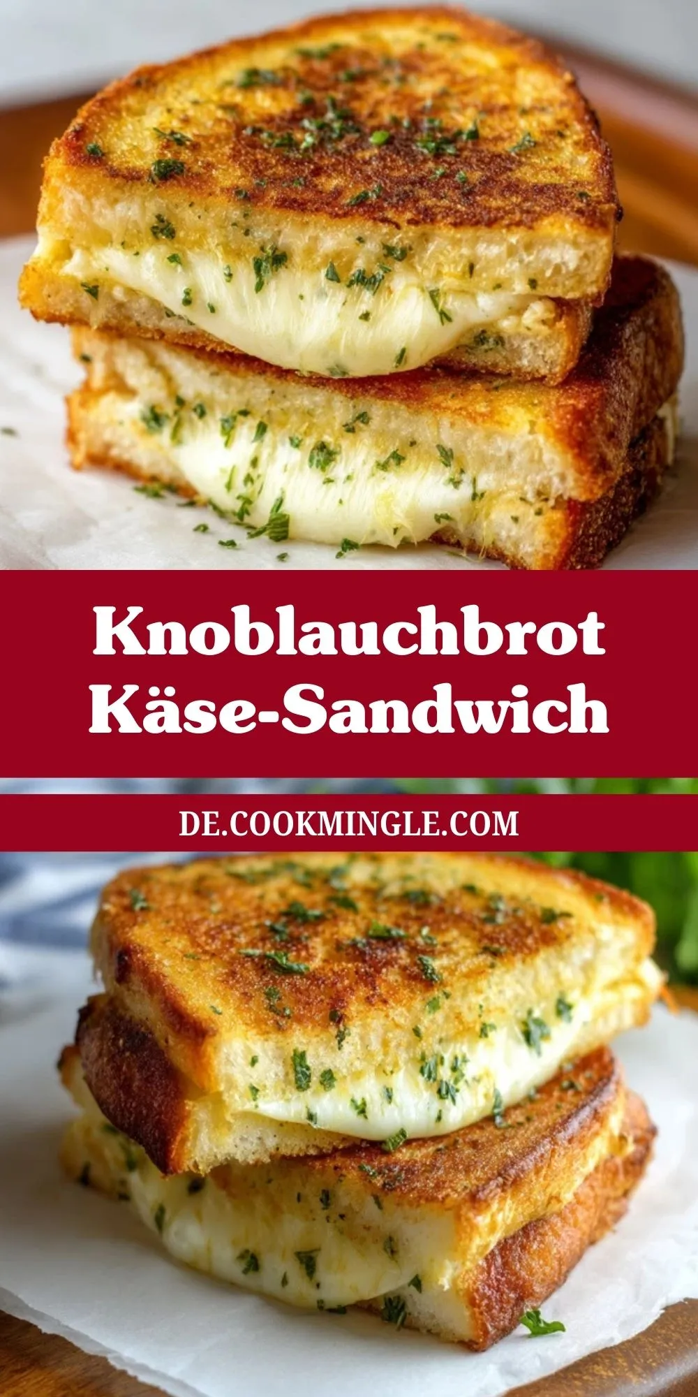 Ein Knoblauchbrot Käse-Sandwich ist das ultimative Wohlfühlgericht: goldbraun geröstetes Brot, geschmolzener Käse, und ein Hauch von Knoblauch und frischen Kräutern. Es vereint alles, was man an einem herzhaften Snack liebt – außen knusprig, innen wunderbar cremig. Perfekt als schnelles Mittagessen, gemütliches Abendbrot oder als Highlight für deinen nächsten Filmabend.
