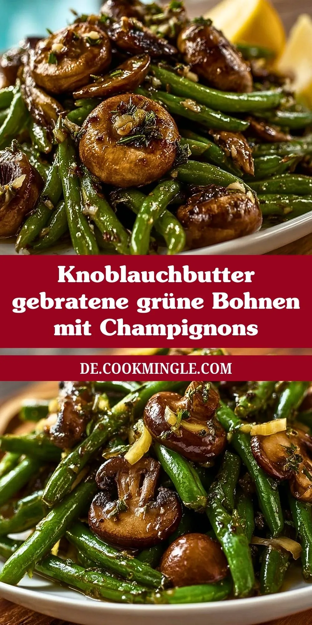 Knackige grüne Bohnen, goldbraun gebratene Champignons und aromatische Knoblauchbutter: Dieses einfache, aber raffinierte Gemüsegericht bringt die volle Geschmackspower direkt auf den Tisch! Egal, ob als Beilage zu festlichen Braten, zu Kartoffeln oder als vegetarisches Hauptgericht – die Kombination aus saftigen Pilzen, frischen Bohnen und würziger Butter ist ein echtes Highlight für alle, die gerne saisonal und frisch kochen.