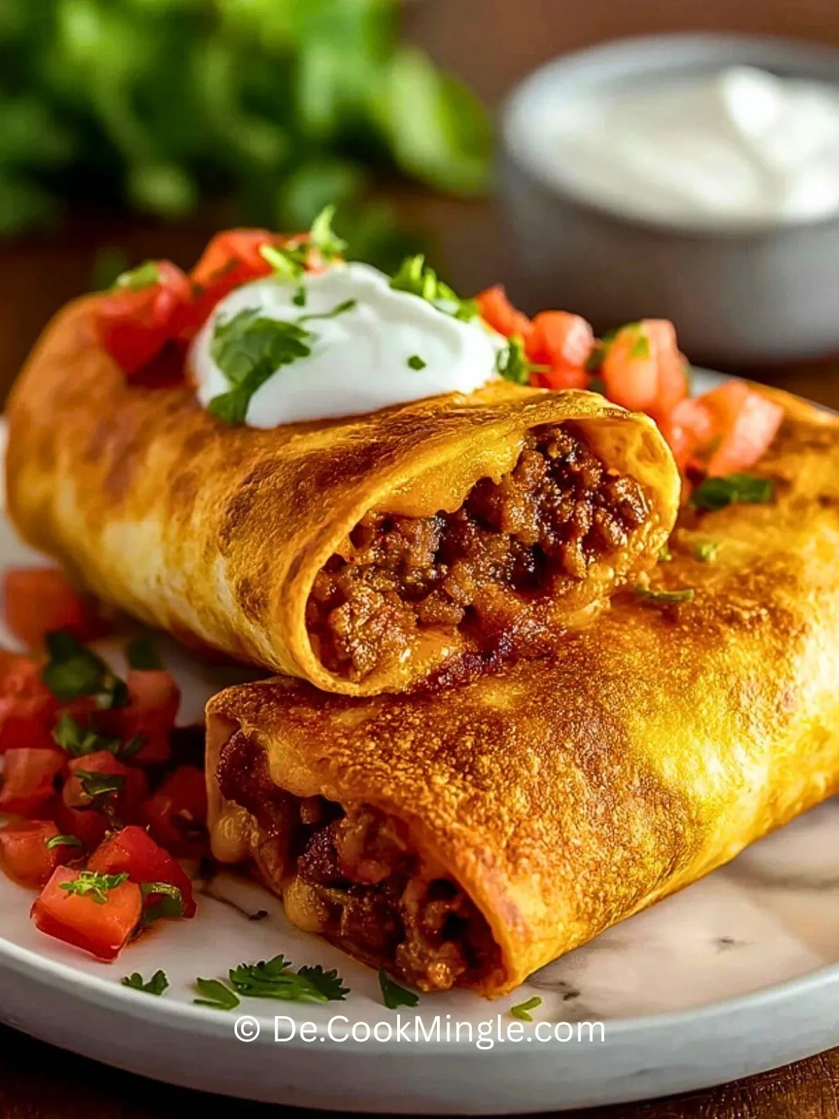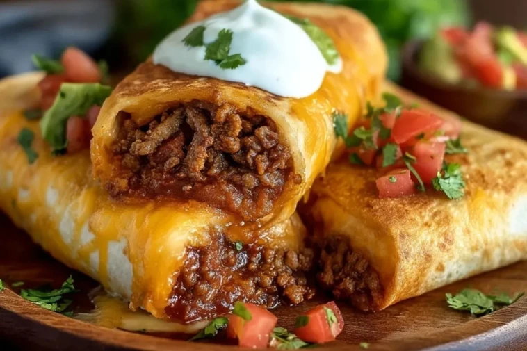 Diese knusprigen Käse-Rindfleisch-Chimichangas sind außen goldbraun, innen würzig und herrlich saftig. Mit kräftig gewürztem Rinderhackfleisch, geschmolzenem Käse und einer knusprigen Tortilla sind sie ein herzhaftes Wohlfühlgericht für Familie, Gäste oder ein entspanntes Abendessen.