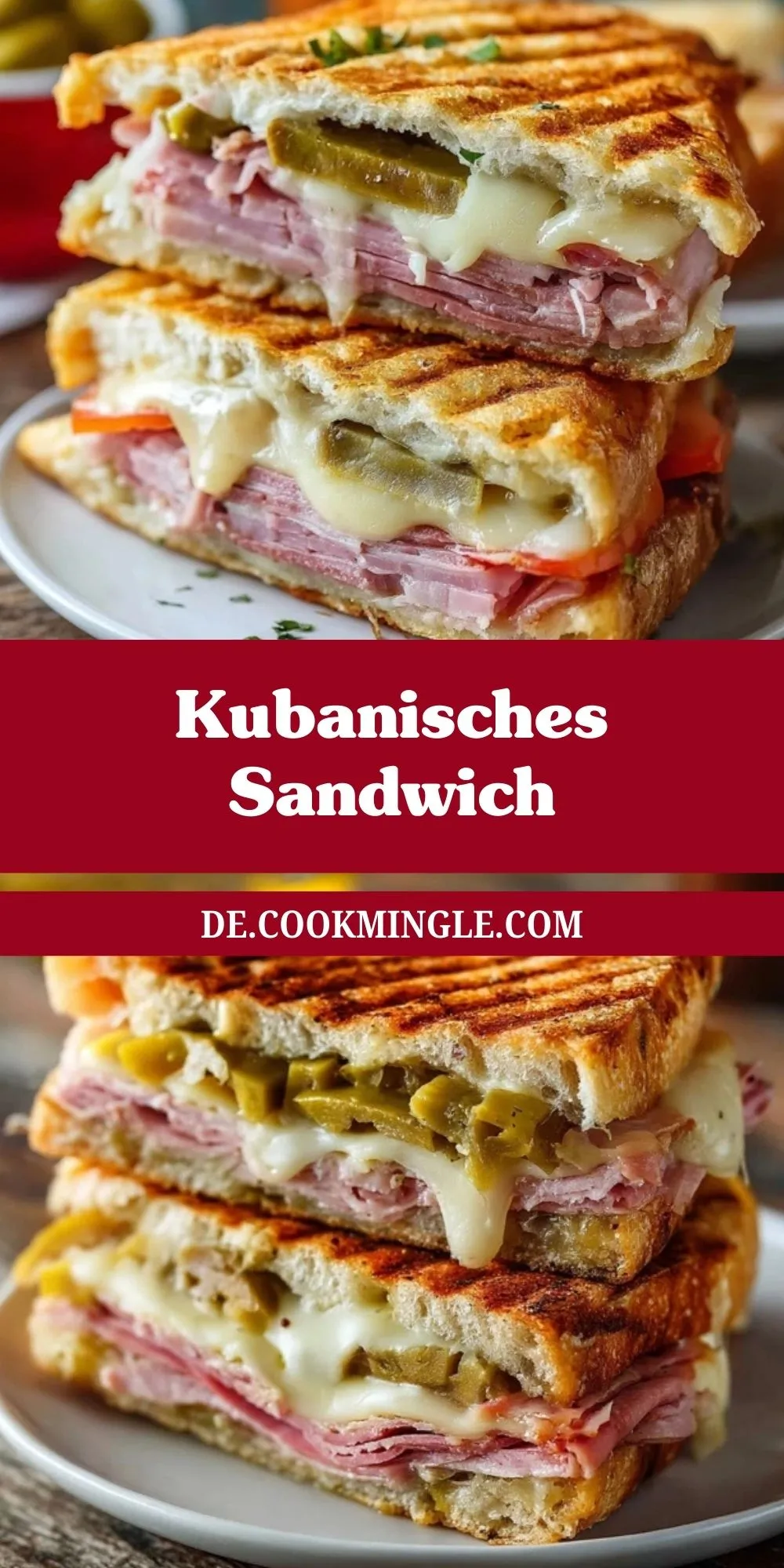 Ein kubanisches Sandwich ist ein warmes, gepresstes Sandwich mit Schinken, saftigem Schweinebraten, geschmolzenem Käse, Senf, Mayonnaise und knackigen Gewürzgurken – außen goldbraun knusprig, innen wunderbar saftig und aromatisch.