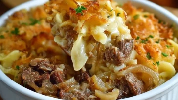 Einfacher Französischer Zwiebel-Rindfleisch-Auflauf