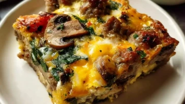 Herzhafter Wurst-Spinat-Pilz-Ei-Auflauf