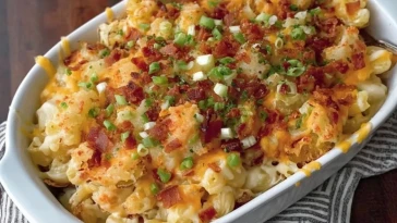 Überbackene Kartoffel-Makkaroni mit Käse und Speck
